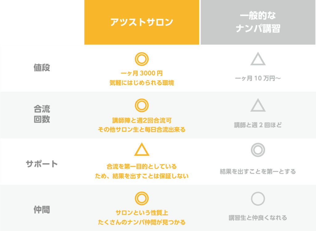 基本合流特化のサロンなのでコンサルはしてないですが、合流日は時間を区切り指名ナンパや声掛け指導などをしております。